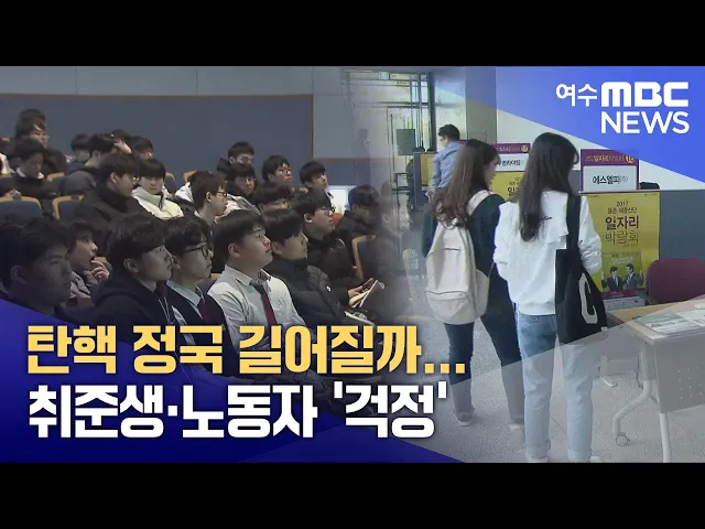 ◀ 앵 커 ▶여수산단의 침체로 채용과 고용시장은 한파인데요.언제 끝날지 모르는 탄핵 정국에더 애가 타는 건취준생들과 노동자들입니다.빠른 정국 안정만이 해결책이라는 목소리입니다.최황지 기자가 취재했습니다.◀ 리포트 ▶여수산단에 입주한 주요 기업의 취업 설명회입니다.예비 대학생부터, 취업준비생, 현직자까지 참...