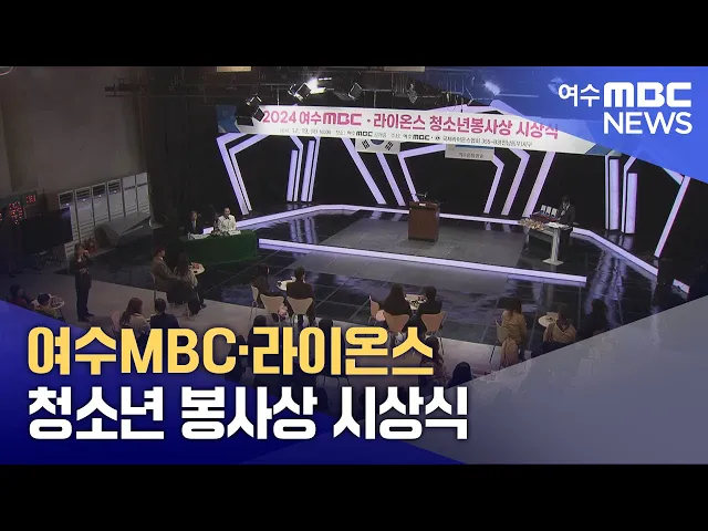 여수MBC와 국제라이온스협회 전남동부지구가 주최하는2024 청소년 봉사상 시상식이오늘(19) 여수MBC 공개홀에서 열렸습니다.올해는 어려운 여건 속 학업과 봉사를 병행한 한국항만물류고 김예린 학생과, 지역사회를 위해 의미있는 활동을 펼친여수청소년수련관 오아시스 등개인과 단체 부문에서 총 8팀이 선정됐습니다.올해...