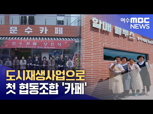 ◀ 앵 커 ▶여수에서 첫 대규모 도시재생사업으로 정비된문수지구에 주민 주도의 첫 협동조합 카페가 문을 열었습니다.주민 경제 조직의 거점으로수익과 일자리 창출을 통해경제적인 자생력을 높이는 계기가 될 것으로 기대됩니다.최우식 기자가 보도합니다.◀ 리포트 ▶여수 문수지구에 주민 주도의 마을관리 사회적 협동조합...