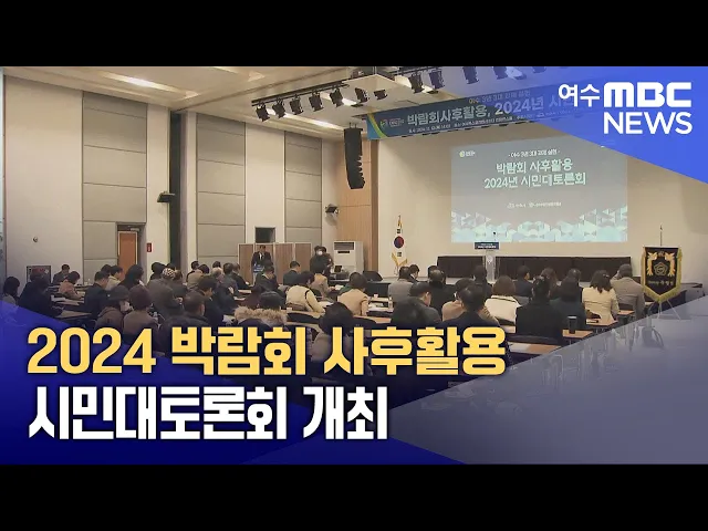 여수세계박람회 사후활용 마스터플랜에 대한시민들의 의견을 수럼하기 위한열린 토론의 장이 마련됐습니다.여수시와 여수선언실천위원회는 오늘(12),엑스포 컨벤션센터에서박람회 사후활용 시민대로톤회를 열고,사후활용 마스터플랜 방향에 대한 제언과섬박람회의 콘텐츠 구성, COP33 유치를 위한 전략과 역할 등,지역 현안...