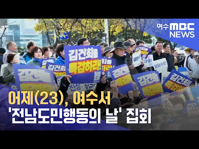 어제(23), 여수 이순신 광장에서도민과 민주당원 천여 명이 참여한 가운데윤석열.김건희 국정농단 규탄.특검 촉구전남도민행동의 날 집회가 열렸습니다.더불어민주당 전남도당 주최로 열린 어제 집회는어울림 더하기, 정권심판 더하기, 도민행동을행사 키워드로 내걸고,박근혜 최순실 정권보다 더한 현 정부의 국정농단을 ...