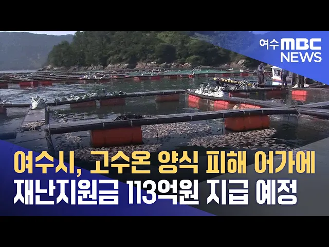 올여름 고수온 피해를 입은 여수지역 양식 어가에113억 원의 재난지원금이 지급됩니다.여수시는 지난 여름, 여자만과 가막만, 거문도 등,관내 442개 양식 어가에서 268억여 원의 고수온 피해가 발생했다며,전체 피해 신고액은 890건, 526억여 원에 달했지만입식 신고가 되지 않은 사례는 인정되지 않았다고 밝혔습니다.여수...