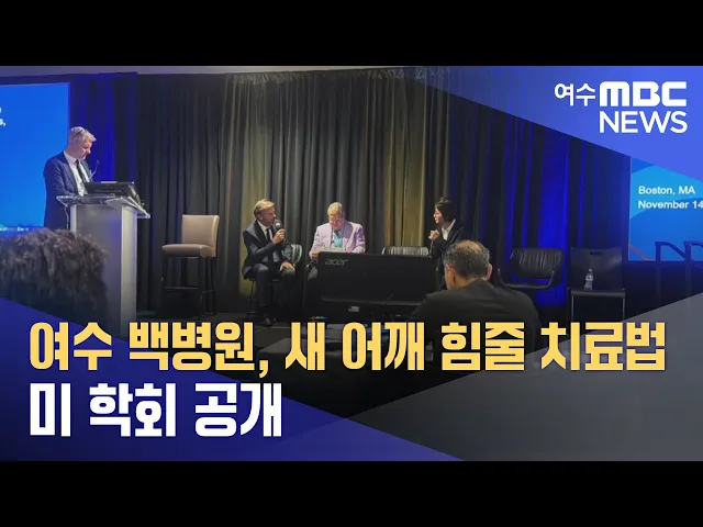 여수의 한 병원이 새로운 어깨 힘줄 치료 방식을 세계적 권위의 미국 학회에 공개해관심을 모으고 있습니다.여수 백병원은지난 14일 미국 보스턴에서 열린어깨 치료 분야 학회에서 봉합이 불가능한 어깨 힘줄 파열에 관한새 수술법을 발표하고, 프랑스와 인도 등세계각국의 의료진과 치료 노하우를 공유했습니다.이번 학회...