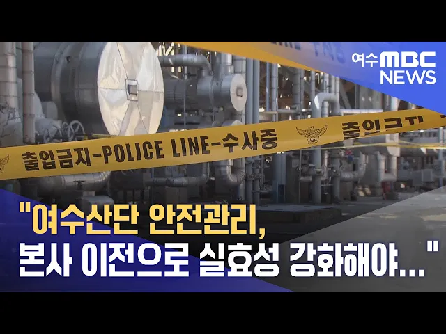여수국가산단 안전관리를 위해서는입주기업의 본사 이전을 통해기업의 책임 경영을 강화해야 한다는 주장이 제기됐습니다.전남도의회 최무경 의원은 최근, 2022년 여천NCC 폭발사고를 예로 들며중대재해법 시행에도 불구하고사업장은 전남에 있지만 본사와 대표자가 외지에 있어 사고 발생 시 책임 소재가 명확하지 않고 주...