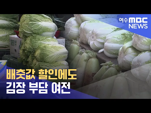 ◀ 앵 커 ▶김장철이 돌아왔습니다.한때 한 포기에 1만 원을 넘던 '금배추'와 무 등김장재료 가격은 조금씩 떨어지고 있는데요.정부 예산으로 마트와 전통시장에서는 김장재료 할인행사가 시작됐지만여전히 오른 가격에경제적 부담이 커지고 있습니다.김단비 기자입니다.◀ 리포트 ▶여수의 한 마트입니다.김장철 할인 행사가 ...