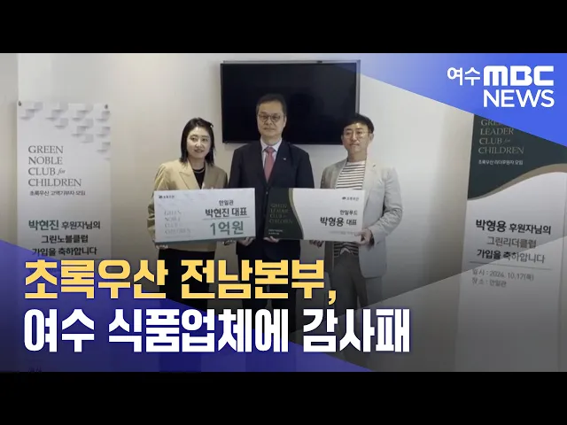 초록우산 전남지역본부가어려운 아동을 위해 오랫동안 기부와 나눔을 실천한 여수의 한 식품 기업에게 감사패를 전달했습니다.여수에서 한일관과 한일푸드를 운영하는 박영복씨는 결식아동을 돕는 '밥 한 공기의 기적' 캠페인을 시작으로 지금까지 1억 원의 후원금을 기부했습니다.그의 나눔은 자녀들에게 이어져 딸 현진씨...