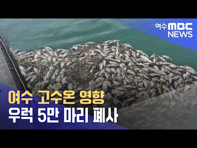 여수 돌산의 양식장에서5만 마리의 우럭이 폐사했습니다.여수시는오늘(22) 우럭 양식장 2개 어가에서약 5만 마리가 폐사했으며, 복구 피해액은 1억 원으로 추정된다고 밝혔습니다.현재까지 여수지역에서 발생한고수온 피해 어류는 우럭과 조피볼락 등88만 마리로 집계됐으며,여수시는 원인 분석을 위해 관계기관과 함께 정...