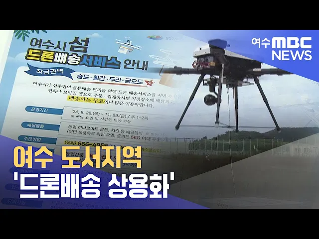 ◀ 앵 커 ▶여수 섬 지역을 대상으로드론을 이용해 물품을 배송하는 사업이본격적으로 시작됩니다.배송비까지 지원받을 수 있어섬 주민들의 편의가 개선될 것으로보이는데요.사업이 안정적으로 정착하기 위해서는 인프라 확충과 규제 개선 등 보완해야 할 과제도 남아 있습니다.문형철 기자입니다. ◀ 리포트 ▶드론 배송업체 ...