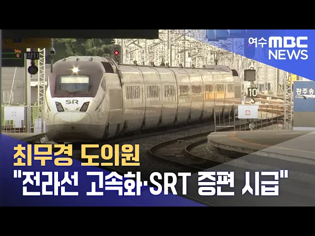 전라선 철도 고속화와SRT 열차 증편 필요성이 제기됐습니다.최무경 전남도의원은 최근도의회 건설교통국 업무보고에서전라선은 경부·호남선과 달리서울에서 3시간 넘게 소요되는무늬만 고속철도라며 이같이 밝혔습니다.최 의원은 이는 국토균형발전에 역행하는 지역 차별이라며,전라선 고속화 사업으로익산-여수 간 소요시...