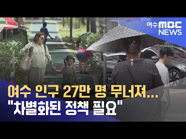 ◀ 리포트 ▶자치단체마다인구 감소가 심각한 가운데여수시 인구도 27만 명대가 무너졌습니다.인구가 꾸준히 줄어드는 데다감소하는 속도도 빨라지면서 실효적인 대책을 요구하는 목소리가커지고 있습니다.문형철 기자입니다. ◀ 리포트 ▶[C/G - 투명] 지난달 말 집계된여수시 인구는 27만 40여 명.20여 일이 지난 지금은 3백 ...