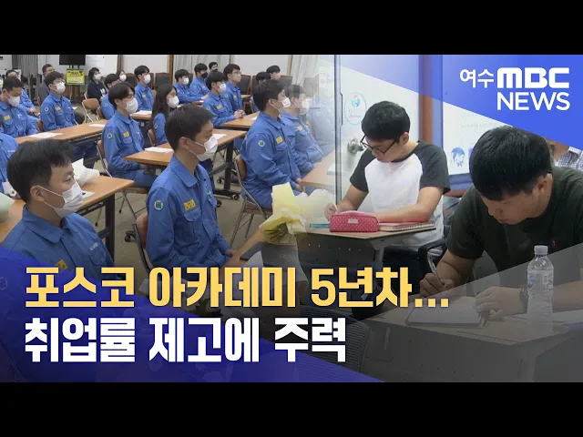 ◀ 앵 커 ▶포스코 그룹사 취업을 위한 맞춤형 교육과정인광양시의 포스코 아카데미가올해로 5년째를 맞고 있습니다.연간 2억 5천만 원의 시비를 들여40명을 선발해 넉 달동안 교육을 실시하는데,광양시는 취업률을 높이는데행정력을 모으고 있습니다.최우식 기자가 보도합니다.◀ 리포트 ▶광양시와 포스코는 지난 2019년, 일...