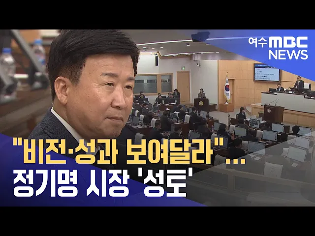 ◀ 앵 커 ▶ 정기명 여수시장을 향한 시의원들의 비판과 쓴소리가 회기 때마다 이어지고 있습니다. 민선 8기가 1년 이상 지났지만 도시 발전을 위한 구체적인 청사진이나 차별화된 정책을 보여주지 못한 채 시간만 보내고 있다는 겁니다. 문형철 기자입니다. ◀ 리포트 ▶ 올해 여수시의회 마지막 회기를 시작하는 본회의 자리....