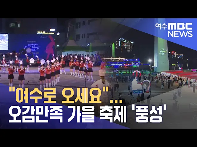 ◀ 앵 커 ▶ 가을의 기운이 완연해 진 가운데 여수는 다음 달까지 가을 축제가 풍성합니다. 시는 오감만족 다채로운 가을 축제를 찾는 전국 관광객들이 400만명을 넘어설 것으로 전망하고 있습니다. 김주희 기자가 보도합니다. ◀ END ▶ ◀ 리포트 ▶ 관악 연주자들의 활기 넘치는 연주에 맞춰 거리 퍼레이드가 펼쳐집니다. 연주...