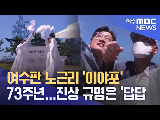 ◀ANC▶ 한국전쟁 당시 미군의 폭격으로 민간인들이 희생된 '노근리 사건'과 비슷한 일이 여수에서도 벌어졌습니다. 여수판 노근리 사건으로 불리는 이야포 사건인데요. 오늘(3) 73주기 추모제가 열렸지만 진상 규명은 10년이 넘도록 답보 상태에 머물러 있습니다. 김단비 기자입니다. ◀VCR▶ 1950년 8월 3일, 미군 전투...