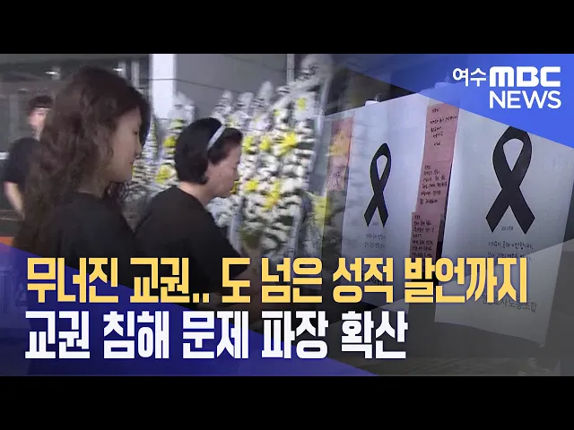 ◀ANC▶ 서울 서이초의 한 교사의 안타까운 선택을 계기로 교권 침해 문제에 대한 파장이 확산되고 있습니다. 전남지역 교사들도 하나둘 씩 직접 학생과 학부모들로부터 겪은 교권침해 피해를 증언하고 나섰습니다. 한 교사는 도를 넘은 학생의 성적 발언과 그 충격을 증언하며 말을 잇지 못하기도 했습니다. 강서영 기자...
