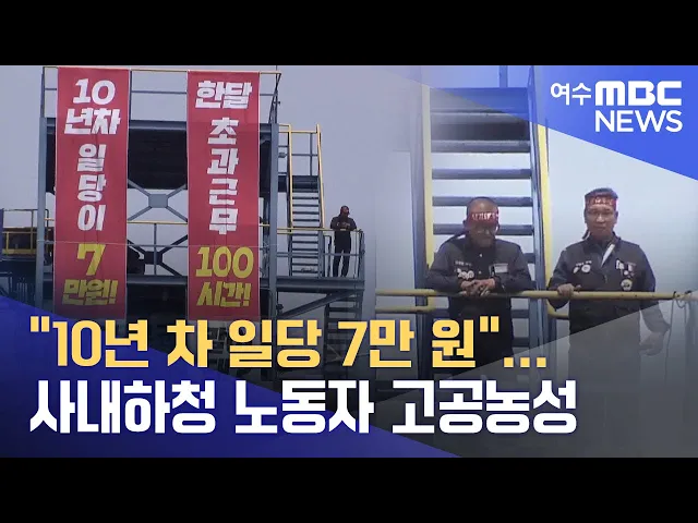 여수)"10년 차 일당 7만 원"...사내하청 노동자 고공농성