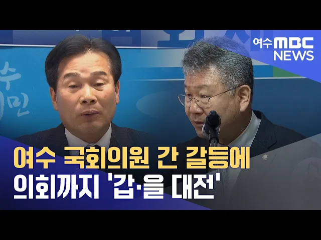 ◀ANC▶ 여수시 두 국회의원 간 의견 충돌이 시 의원 사이 갈등 양상으로 번지면서 지역의 주요 현안들이 표류한다는 내용 어제 전해드렸습니다. 이런 상황에서 입장 정리에 책임이 있는 여수시장은 쟁점 현안마다 한 발 뒤로 물러서 원론적인 답변만 반복하고 있어 갈등 국면을 더욱 키우고 있다는 지적입니다. 김주희 기...