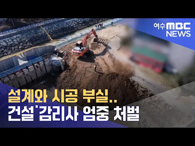 ◀ANC▶ 지난 해 11월, 여수의 한 생활형숙박시설 공사 현장에서 흙막이벽이 무너져 바닷물이 공사 현장으로 유입되는 사고, 보도해 드렸습니다. 조사 결과 흙막이벽의 설계와 시공 부실이 원인이었습니다. 여수시가 건설사와 감리사에 대한 행정 처분과 함께 재발 방지 대책을 내놨습니다. 김주희 기자가 보도합니다. ◀E...