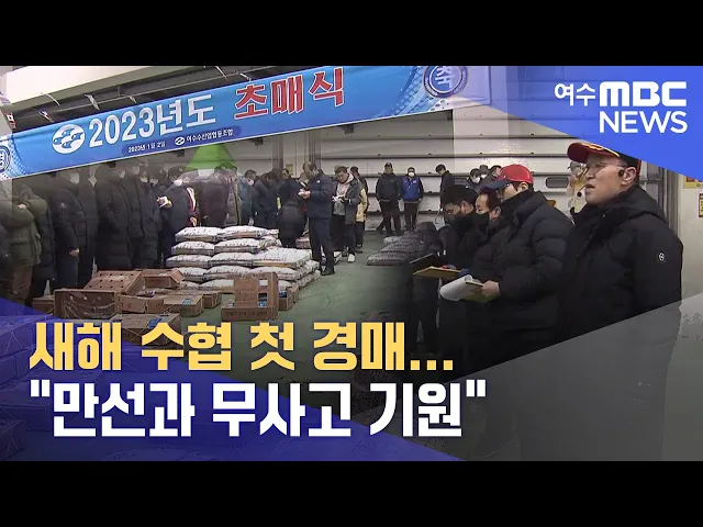 ◀ANC▶ 수협 위판장에서 새해 첫 경매가 열렸습니다. 올 한해 어민들의 무사고와 만선을 기원하는 초매식 현장을 김단비 기자가 다녀왔습니다. ◀VCR▶ 모두 깊은 잠에 빠져 있을 고요한 새벽, 여수수협 위판장이 사람들로 북적입니다. 바닥엔 냉동 삼치와 민어, 붕장어 등 3만 5천여 상자가 깔려 있습니다. 이윽고 경매...
