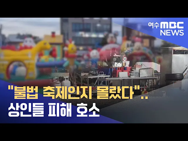 ◀ANC▶ 어제(13) 뉴스에서 최근 여수 국동항에서 열린 축제들이 적법한 절차를 거치지 않은 불법 축제였다는 내용 전해드렸는데요. 이번엔 축제에 참여한 상인들이 무허가 축제인 걸 몰랐다며 피해를 호소하고 있습니다. 김단비 기자입니다. ◀VCR▶ 지난달 여수 국동항에서 열린 두 축제에서 장사를 한 상인들은 이 축...