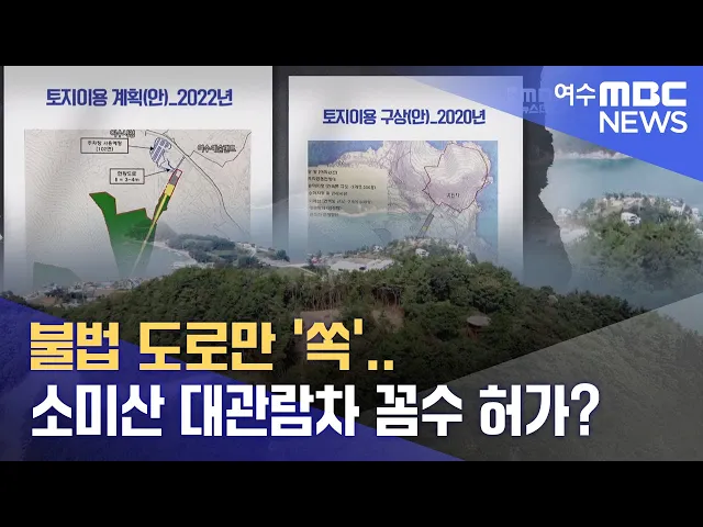 ◀ANC▶ 여수 소미산 대관람차 추진을 둘러싸고 난개발 논란이 다시 불거지고 있습니다. 얼마전 제시된 업체 측의 대관람차 사업 계획서를 들여다보니, 2년전 문제가 됐던 불법 도로만 빠져 있어 처벌과 불허가를 피하기 위한 꼼수 개발이라는 지적이 이어지고 있습니다. 강서영 기자입니다. ◀VCR▶ 2020년 주식회사 공...