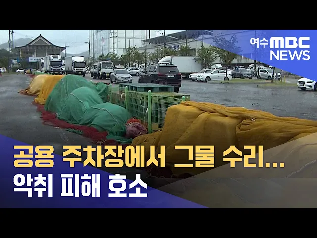 ◀ANC▶ 누구나 이용할 수 있는 공용 주차장을 어민들이 수년 동안 그물 수리장으로 무단 사용해와 논란이 일고 있습니다. 최근 행정기관으로부터 정식 사용허가를 받긴 했지만 이용객들은 악취 등 문제를 지적하고 있습니다. 보도에 김단비 기자입니다. ◀VCR▶ 여수수협 공판장 옆 주차장입니다. 곳곳에 펼쳐진 그물들...