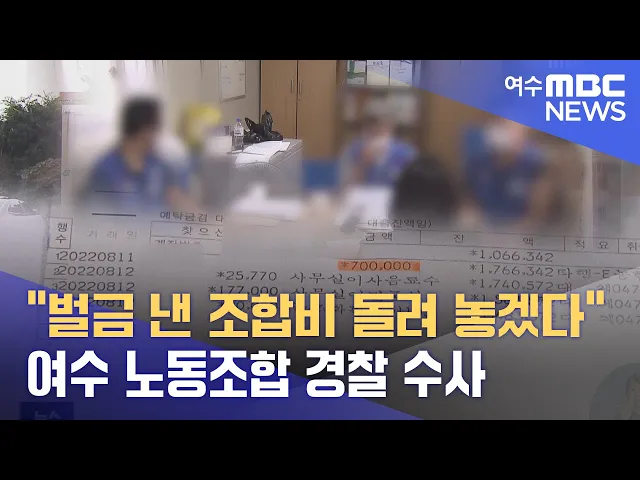 ◀ANC▶ 지난주 보도된 여수의 한 노동조합 조합비 운용 의혹에 대해 노조가 조합비를 돌려놓겠다고 밝혔습니다. 논란이 커지자 간부 개인 소송비와 벌금 등에 지출된 조합비를 다시 채워놓겠다고 전했는데요. 관련 고발장을 접수한 경찰은 수사에 착수했습니다. 김단비 기자입니다. ◀VCR▶ 조합 간부의 개인 소송비와 ...