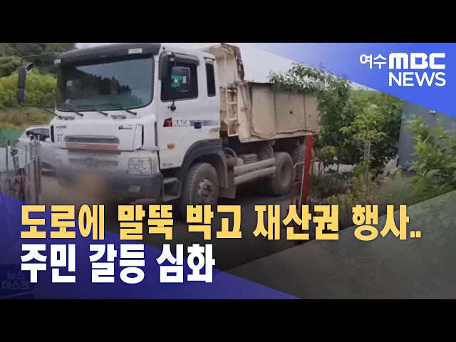◀ANC▶ 사유지 위 도로를 둘러싼 땅 소유주와 주민 간 갈등이 끊이지 않고 있습니다. 여수의 한 마을에도 도로에 생긴 말뚝으로 주민들이 통행에 불편을 겪고 있는데요. 재산권 피해를 주장하는 소유주와 주민 간 대립이 법적 분쟁으로 번지고 있습니다. 김단비 기자입니다. ◀VCR▶ 여수의 한 마을. 대형 화물차가 마을...