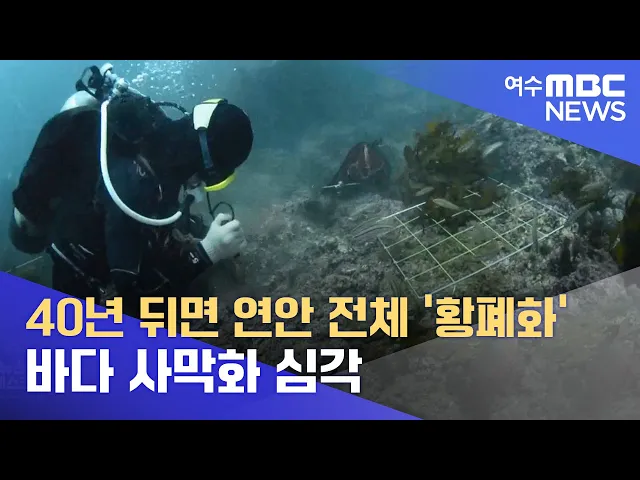 ◀ANC▶ 육지처럼 바다에도 해조류로 이뤄진 '바다 숲'이 있는데요. 하지만, 40년 뒤면 국내 연안 전체가 황폐화될 만큼 이 바다숲의 사막화 속도가 심각한 수준이라고고 합니다. 오는 10일 바다식목일을 앞두고 여수 앞바다에는 인공 바다숲을 조성하는 작업이 한창인데요. 현장을 강서영 기자가 다녀왔습니다. ◀VCR▶ ...
