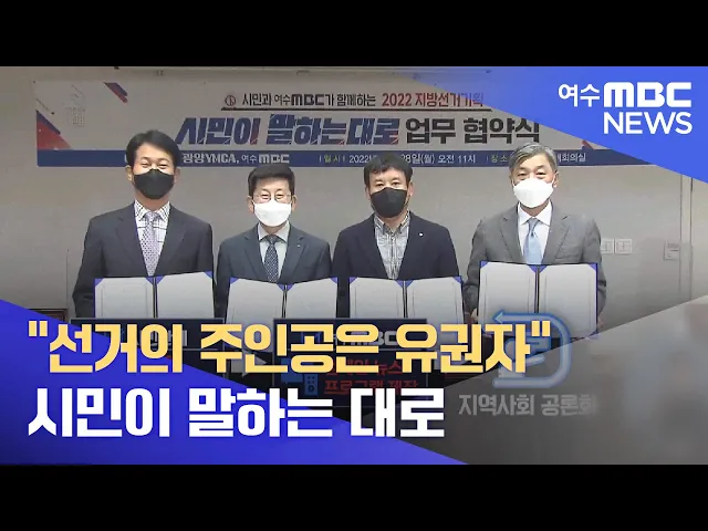 ◀ANC▶ 이제 두 달여 앞으로 다가온 지방선거. 우리가 살고 있는 지역, 또 시민들의 삶에 큰 영향을 미치는 중요한 이벤트인데요. 유권자가 주인공이 되는 선거 문화를 만들기 위해 지역의 시민단체들과 저희 여수MBC가 색다른 프로젝트를 시도합니다. 문형철 기자입니다. ◀VCR▶ 새로운 지역 일꾼을 뽑기 위해 4년마다...
