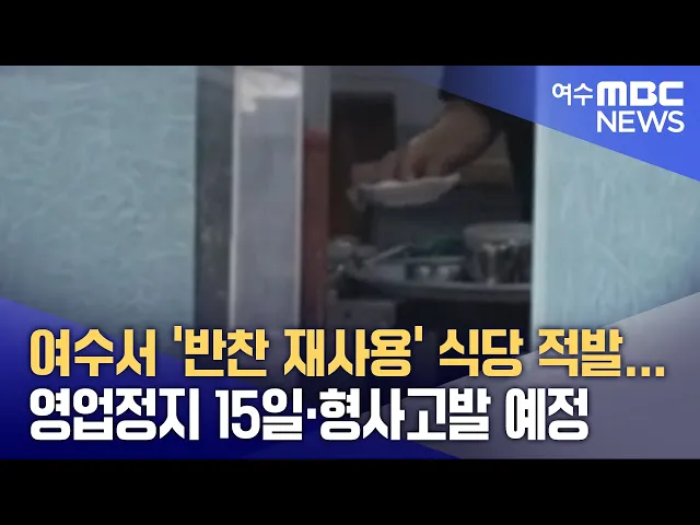 여수지역의 한 식당이반찬을 재사용하다 적발돼 지자체가 행정처분에 나섰습니다.여수시는 교동에 있는 한 음식점에서 남은 반찬을 재사용하는 행위가 확인돼 해당 식당에 대해 영업정지 15일의 행정처분을 내리고형사고발 할 계획이라고 밝혔습니다.여수시는 또, 내일(11)부터 나흘 동안보건소 직원과 식품위생감시원 등80...