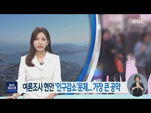 ◀ANC▶ 6월 지방선거를 앞두고 벌써부터 각종 여론조사가 관심을 끌고 있는 가운데, 특히, 지역 현안에 대한 유권자들의 응답은 입후보 예정자들이 가장 주목하는 대목입니다. 대부분의 자치단체가 그동안 지역에서 이슈가 돼 온 현안 보다는 인구 감소 문제 해결을 가장 높게 꼽고 있어 이번 선거에서 가장 큰 공약이 될...