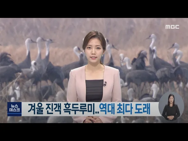 ◀ANC▶겨울 철새 흑두루미는 매년 러시아에서 남하해 순천만에서 겨울을 나고 있습니다.올해는 역대 최대인 3천 3백여마리의 흑두루미가순천만을 찾아 장관을 연출하고 있습니다.강서영 기자입니다.◀VCR▶철새 무리가 순천만 일대 하늘을 가득 메웠습니다.국제 멸종위기종이자, 천연기념물 228호인 흑두루미도다른 철새...