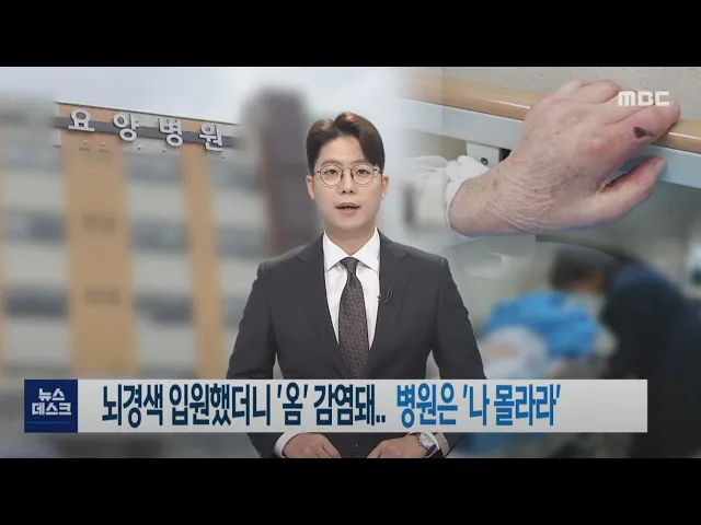 ◀ANC▶뇌경색으로 요양병원에 입원한 환자가 피부 감염 질환인 옴에 걸렸습니다. 그러나 적절한 치료조차 받지 못한 채 한달 동안 방치되다시피 했는데요, 결국 상태가 악화돼 중환자실에 입원하는 지경에 이르렀습니다. 조희원 기자가 취재했습니다.◀VCR▶A 씨는 올해 91살인 어머니를 지난 5월, 뇌경색으로 여수의 한...