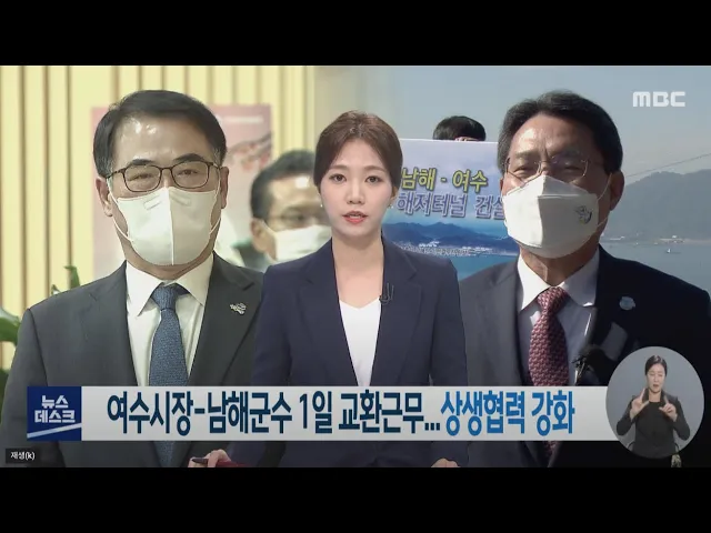 ◀ANC▶오늘(26), 여수시장과 남해군수가양 시.군의 상생 협력 방안을 모색하기 위해서로 지역을 바꿔 하루동안 교환근무를 했습니다.여수~남해간 해저터널 건설을 계기로더욱 가까워질 양 시.군이 다양한 분야에서 상호 협력하는 또 다른 동서화합의 모델이 될 것으로 기대됩니다.최우식 기자가 보도합니다.◀VCR▶권오...