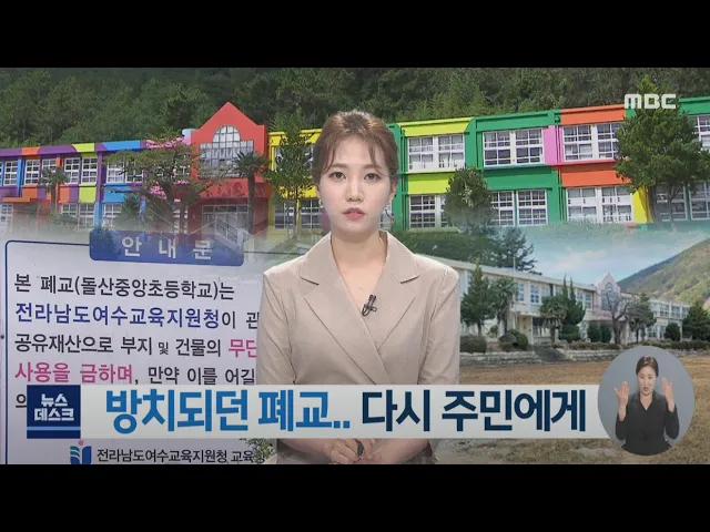 ◀ANC▶한때 마을 공동체의 중심이었지만 폐교가 돼버린 학교들이 전남지역에는 여전히 많습니다.개인에 매각된 폐교들이 방치되는 경우가 많아지자 교육청이 폐교를 직접 개발해 주민에게 돌려주자는 사업에 들어갔습니다.강서영 기자입니다.◀VCR▶여수 돌산중앙초등학교가 14년 만에 알록달록한 새 옷으로 갈아입었습...