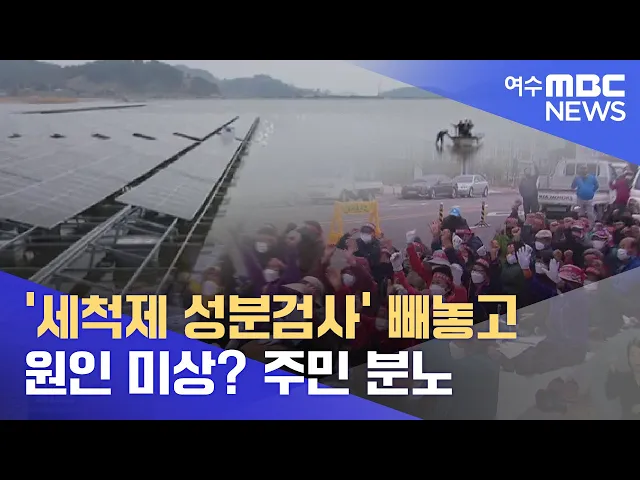 ◀ANC▶ 어류 집단 폐사가 발생한 고흥 해창만에서 세척제 성분이 검출되자, 분노한 주민들이 태양수상광 허가를 취소하라고 요구했습니다. 고흥군이 원인 미상이라고 판단한 결과서를 들여다봤더니 정작 주민이 원인으로 지목한 세척제 성분은 검사 의뢰조차 하지 않은 것으로 드러났습니다. 강서영 기자입니다. ◀VCR▶...