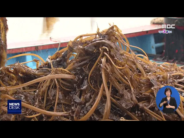 ◀ANC▶지난 겨울 바다 고수온으로 미역 작황이 부진할 것으로 예측됐는데요. 다행히도 지난 1월 이후 평년 수온을 되찾고 해황도 개선되면서평년작 수준을 기록해 어민들이 안도하고 있습니다. 김주희 기자가 보도합니다. ◀END▶ ◀VCR▶고흥군 금산면의 미역 가공 공장입니다. 일본으로 수출될 미역의 원초를 세척하...