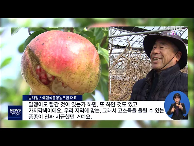 ◀ANC▶ 고흥 석류는 지역의 대표적인 특산물로잘 알려져 있지만, 과실의 색이나 맛이 고르지 않다는 문제가 이어져 왔는데요. 이를 보완하기 위한 석류 신품종이 10여 년의 연구 끝에 개발돼본격적인 시범 재배에 들어갔습니다. 문형철 기자입니다. ◀VCR▶지난해 고흥에서 수확된 석류는 270t.전국 생산량의 75%를 차...