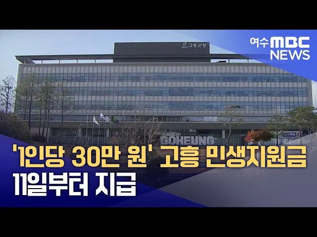 고흥군이 오는 11일부터민생회복지원금을 지급합니다.고흥군은 지난해 12월 31일 기준고흥에 주소를 둔 6만 5백여 명에게1인당 30만 원씩총 182억 원의 민생회복지원금을지급한다고 밝혔습니다.3월 11일부터 14일까지는 읍면사무소 직원이 마을을 직접 방문해 지급하고,이후 지원금을 받지 못한 주민은4월 11일까지 주소지 ...