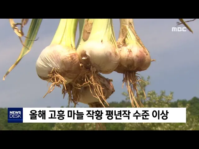 ◀ANC▶전국 최대 마늘 주산지인 고흥 지역에서햇 마늘 수확이 시작됐습니다.올해 마늘 작황은 평년작 이상이지만 가격이 폭락 조짐을 보이면서 농민들의 근심이 커지고 있습니다.김주희 기자가 보도합니다. ◀END▶ ◀VCR▶고흥군 도덕면 마늘 재배단지입니다.올해 햇 마늘을 수확하는 농민들의 손길이 쉴틈없이 분주...