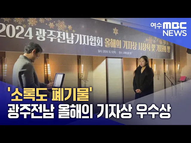 여수MBC가 기획 보도한 뉴스가광주전남기자협회가 주관한올해의 기자상과 이달의 좋은 보도에 선정됐습니다.광주전남기자협회는김단비, 배준식 기자가 제작한'소록도 폐기물' 보도를올해의 기자상 방송 기획 부문 우수상으로 선정했습니다.해당 보도는 고흥 소록도에 석면이 포함된건설 폐기물이 장기간 버려진 실태를 고발...