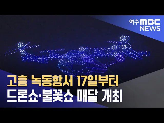 이번 주 토요일부터 고흥 녹동항에서해당 멀티미디어 불꽃쇼가 매달 개최됩니다.고흥군은 오는 17일'무인도에서 살아남기'를 주제로700대 규모 드론쇼와 함께해상 불꽃쇼를 선보인다고 밝혔습니다.고흥군은 또, 추석 연휴 기간인 9월 14일부터 17일까지특별 공연을 마련하는 등드론쇼와 해상 불꽃쇼 연계를 통해볼거리를 강...