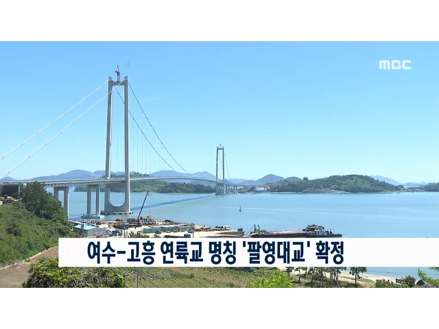 그동안 다리 명칭을 두고 논란을 빚었던여수-고흥간 연륙교 이름이'팔영대교'로 결정됐습니다.전라남도 지명위원회는 지난 4월 여수-고흥간 연륙교 명칭을‘팔영대교’로 의결했지만여수시와 고흥군 사이 갈등이 있다는 이유로 부결한 뒤최근 자문위원회를 개최해 ‘팔영대교’로 최종 결정했습니다.여수~고흥 간 연륙교 명칭은...