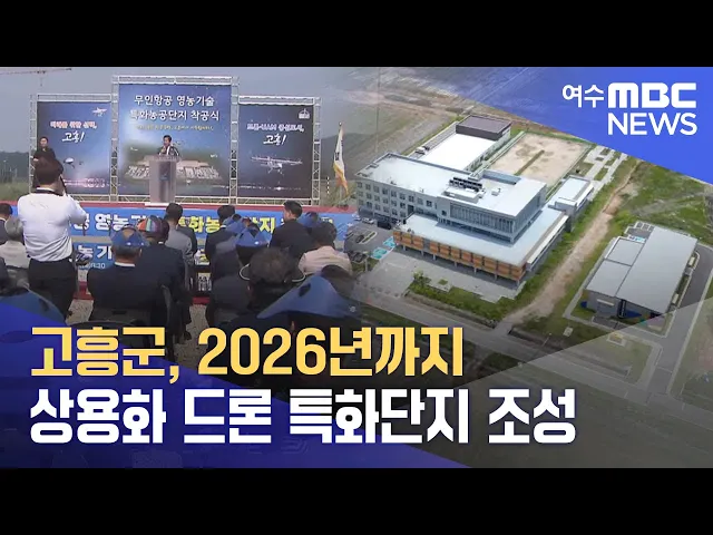 ◀ 앵 커 ▶고흥 항공센터 인근에 오는 2026년 말 준공을 목표로무인항공 영농기술 특화농공단지가 오늘(11), 착공했습니다.농업용을 포함한 상용화 드론의 제조.연구와 관련된 기업이 입주할 예정인데,민선 8기 고흥군의 핵심사업의 하나인드론 산업 육성의 기폭제가 될 전망입니다.최우식 기자가 보도합니다.◀ 리포트 ▶전국...