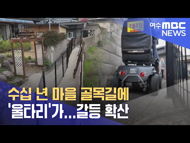 ◀ 앵 커 ▶수십 년 동안 자유롭게 이용하던주택가 골목길에 울타리가 설치돼통행이 불편해진 곳이 있습니다.고흥의 한 마을 길에 사유지가 포함되면서땅 주인과 주민 사이에 갈등이 일고 있습니다.김단비 기자입니다.◀ 리포트 ▶주택가 좁은 길을 따라철제 울타리가 세워졌습니다.울타리가 쳐진 공간은40년 넘게주민들이 골목...
