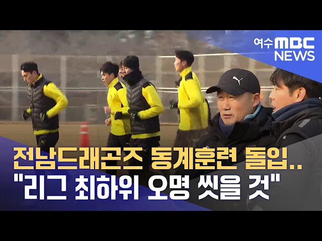 ◀ANC▶ 전남드래곤즈가 새로운 시즌을 위한 동계훈련에 들어갔습니다. 감독과 선수들, 코칭 스태프 모두 2부 리그 최하위라는 불명예를 떨쳐내기 위해 남다른 각오를 다지고 있는데요. 문형철 기자가 훈련 현장에 다녀왔습니다. ◀VCR▶ 광양에 있는 축구 연습장. 한겨울 추위 속에서도 선수들은 구슬땀을 흘리며 바쁘게...
