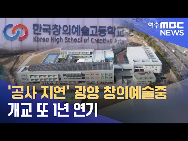 ◀ANC▶ 전남 동부 지역 예술 교육의 중심축이 될 한국창의예술중학교와 고등학교 통합 운영이 거듭 미뤄지고 있습니다. 애초 올해 예술중학교 개교가 계획됐는데, 1년, 또 1년이 밀리며 오는 2024년 3월로 다시 조정됐습니다. 통합 운영을 시작하더라도 예술고등학교 학내 갈등, 광양시 예산 지원 등 풀어야 할 숙제가 쌓...