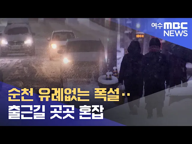 ◀ANC▶ 서부권보다 상대적으로 눈이 자주 내리지 않는 전남 동부 지역에도 어제 밤부터 많은 눈이 내렸습니다. 특히 순천에는 20cm에 가까운 폭설로 출근길 교통 혼잡을 빚었습니다. 유민호 기자입니다. ◀VCR▶ 동이 트기 전 새벽. 눈을 뒤집어쓴 차량들이 속도를 줄이고 도로를 지나갑니다. 어제 저녁부터 내린 눈이 ...