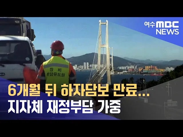 ◀ANC▶ 지역경제의 대동맥 역할을 하는 이순신대교의 하자보수 담보 기간이 6개월 뒤면 만료됩니다. 이후 지자체가 부담해야 할 유지보수비가 많게는 한해 100억 원에 달할 것으로 보이지만, 현재로서는 딱히 방법이 없어 지자체의 고민이 깊어지고 있습니다. 문형철 기자입니다. ◀VCR▶ 여수와 광양을 잇는 국내 최장 ...